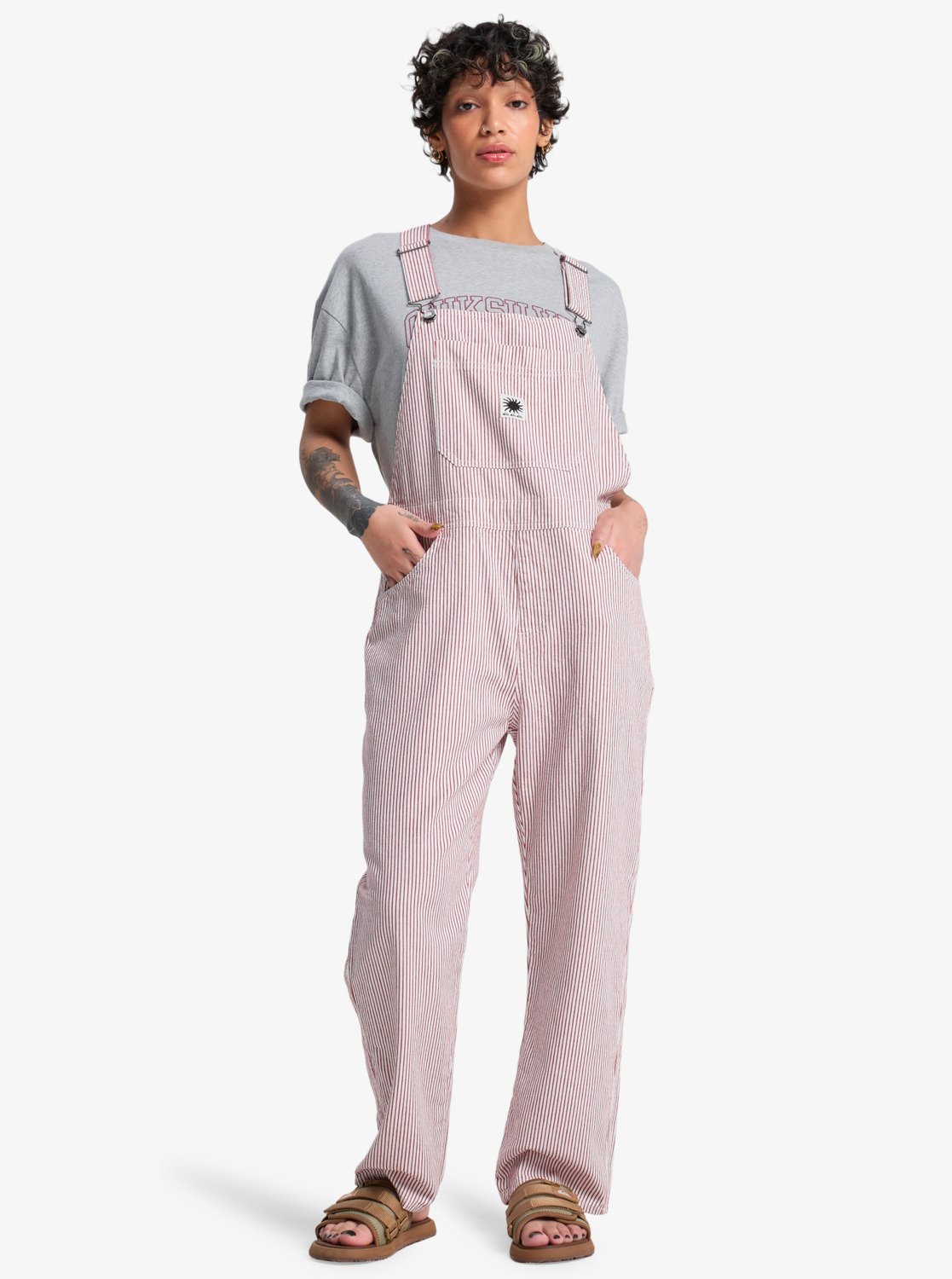 Quiksilver – Angua Stripes – Salopette pour Femme Burnt Russet Stripe